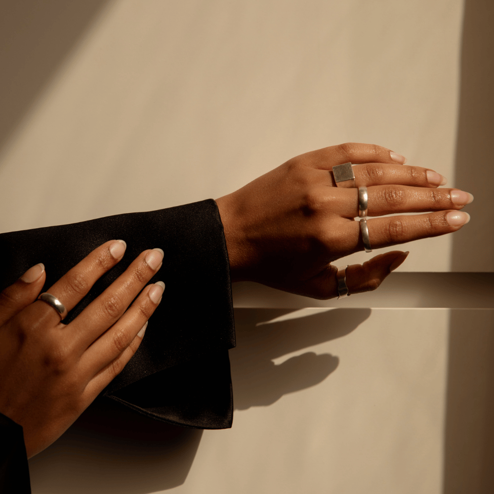 Anel Meia Aliança 7 Pedras de Moissanite em Prata 925