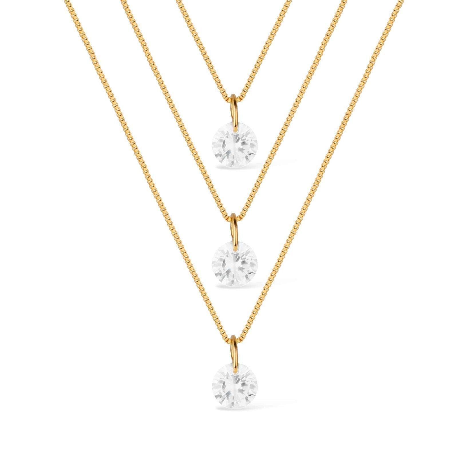 Colar Dourado Triplo 3 Pontos de Luz em Zircônia