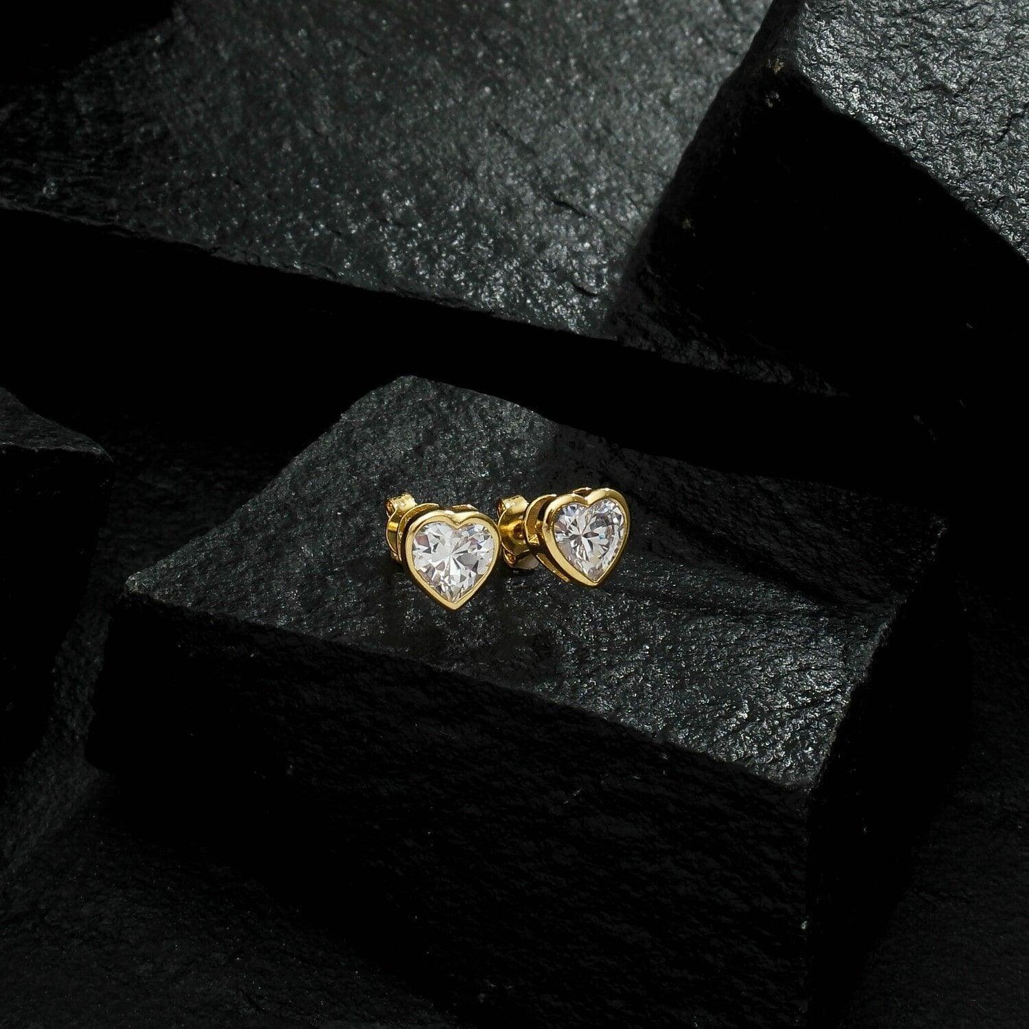 O Duo Coração Zircônia Dourado combina duas peças atemporais: um colar delicado com pingente de coração em zircônia lapidada e um par de brincos pequenos no mesmo formato.